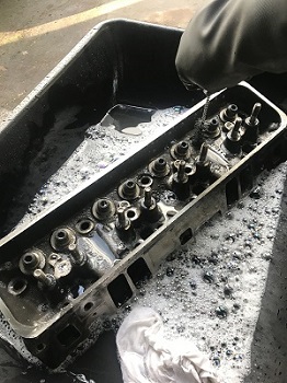 brushes that could get into all the oil passages and water jacket corners of an engine block. Once the rust was off, I washed